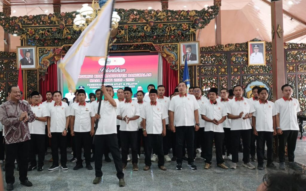 BANGKALAN, linejatim – Momentum kebangkitan olahraga di Kabupaten Bangkalan kembali bergulir. Bertempat di Pendopo Agung Kabupaten Bangkalan pada Rabu (17/2/2026), prosesi pelantikan pengurus KONI Kabupaten Bangkalan masa bakti 2026-2028. Acara ini sekaligus menjadi moment pemberian bonus bagi para atlet dan pelatih berprestasi yang berhasil meraih medali pada Porprov IX tahun 2025.